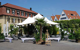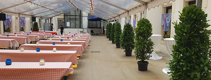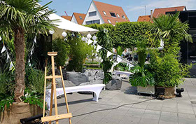 Egal ob Festzelt oder Betriebsfeier, wir gestalten Ihr großes Event mit dekorativem Pflanzenschmuck. Von der großen Palme, bis hin zu einem Tannenzweigen-Dach für Ihren Messestand, wir beliefern Sie mit der zu Ihrem Event passenden Pflanzendekoration.