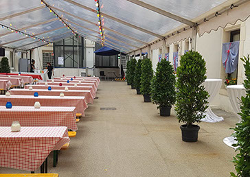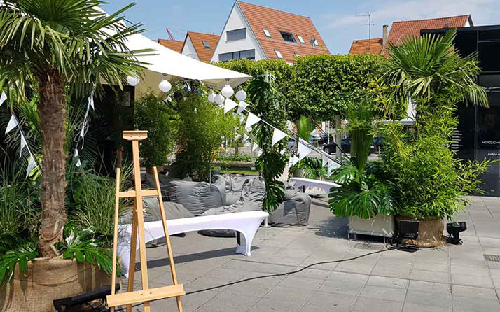 Egal ob Festzelt oder Betriebsfeier, wir gestalten Ihr großes Event mit dekorativem Pflanzenschmuck. Von der großen Palme, bis hin zu einem Tannenzweigen-Dach für Ihren Messestand, wir beliefern Sie mit der zu Ihrem Event passenden Pflanzendekoration.